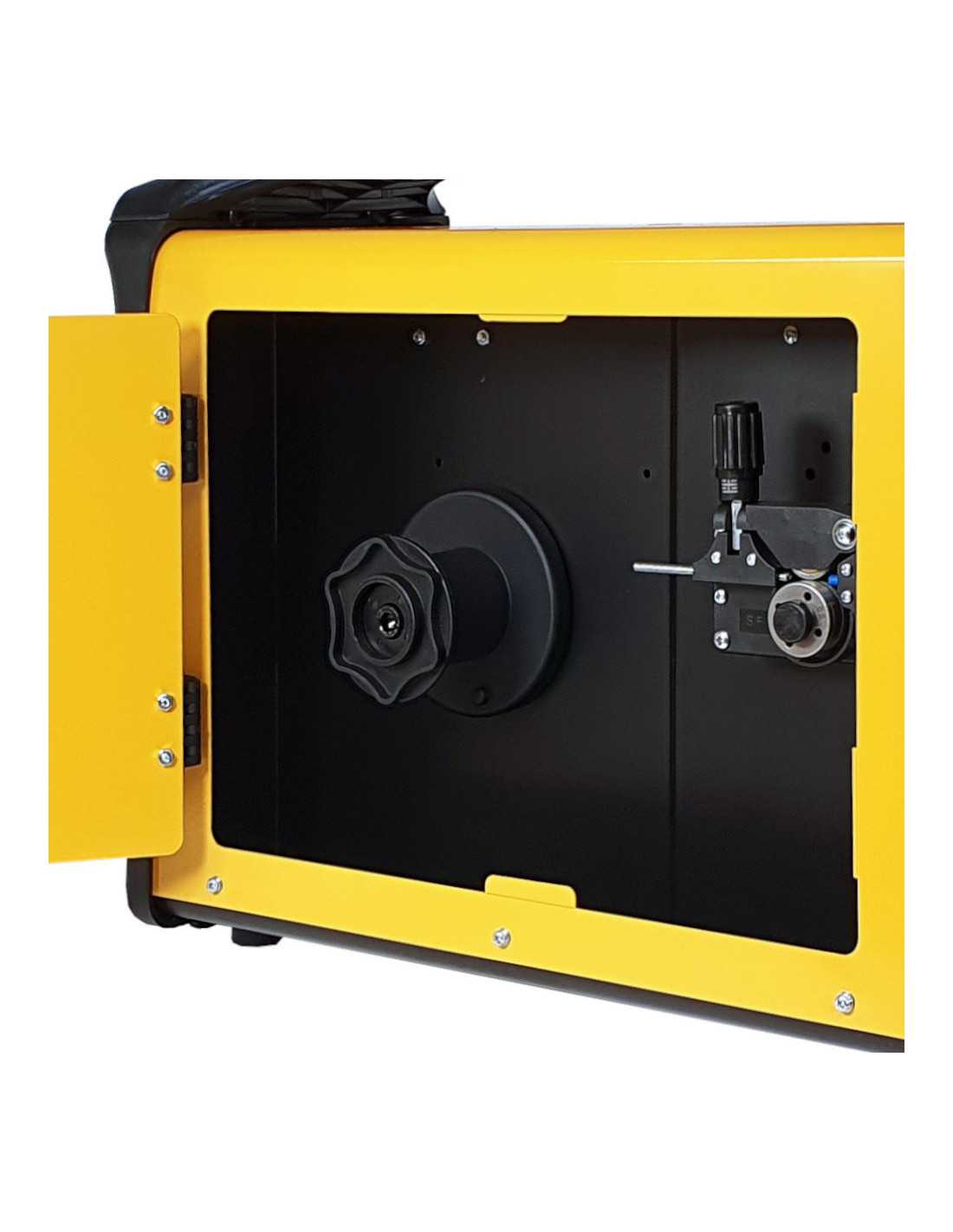 Reglajul vitezei de inaintarea a sarmei si tensiune de sudare se fac cu precizie mare cu ajutorul celor doua potentiometre de pe panoul frontal.