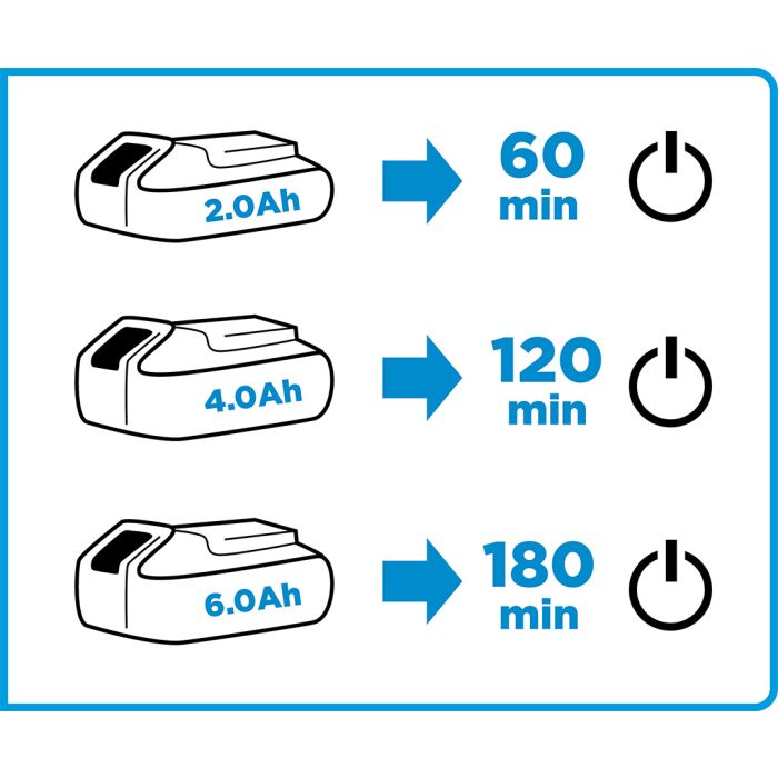 - incarcator recomandat pentru baterii litiu-ion de 18 V din seria GRAPHITE Energy +, cu o capacitate de la 2 la 4 Ah.